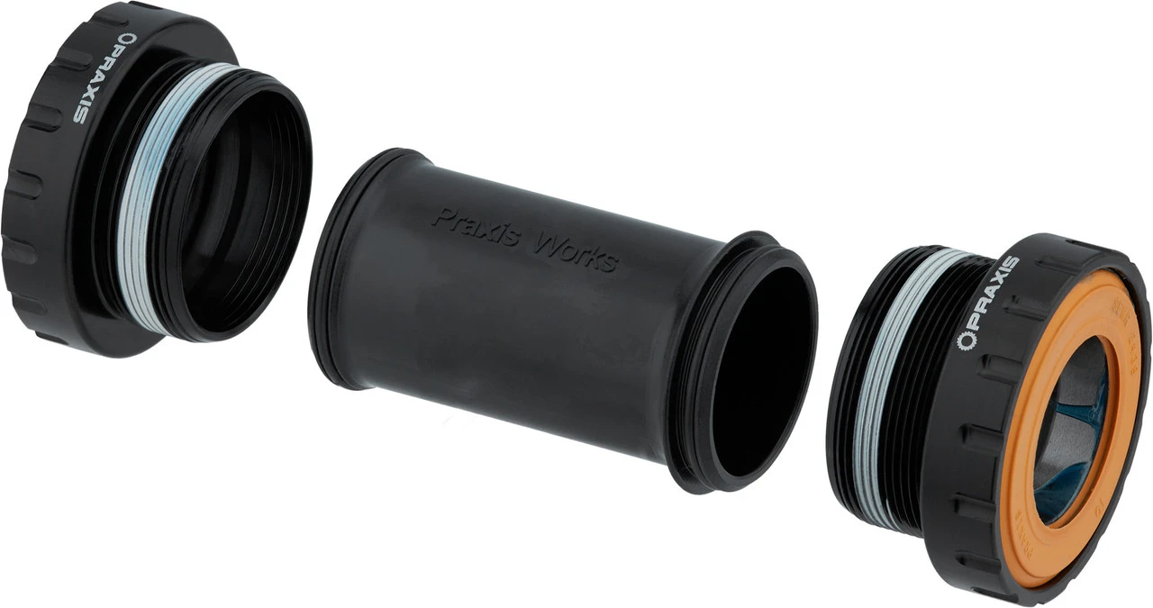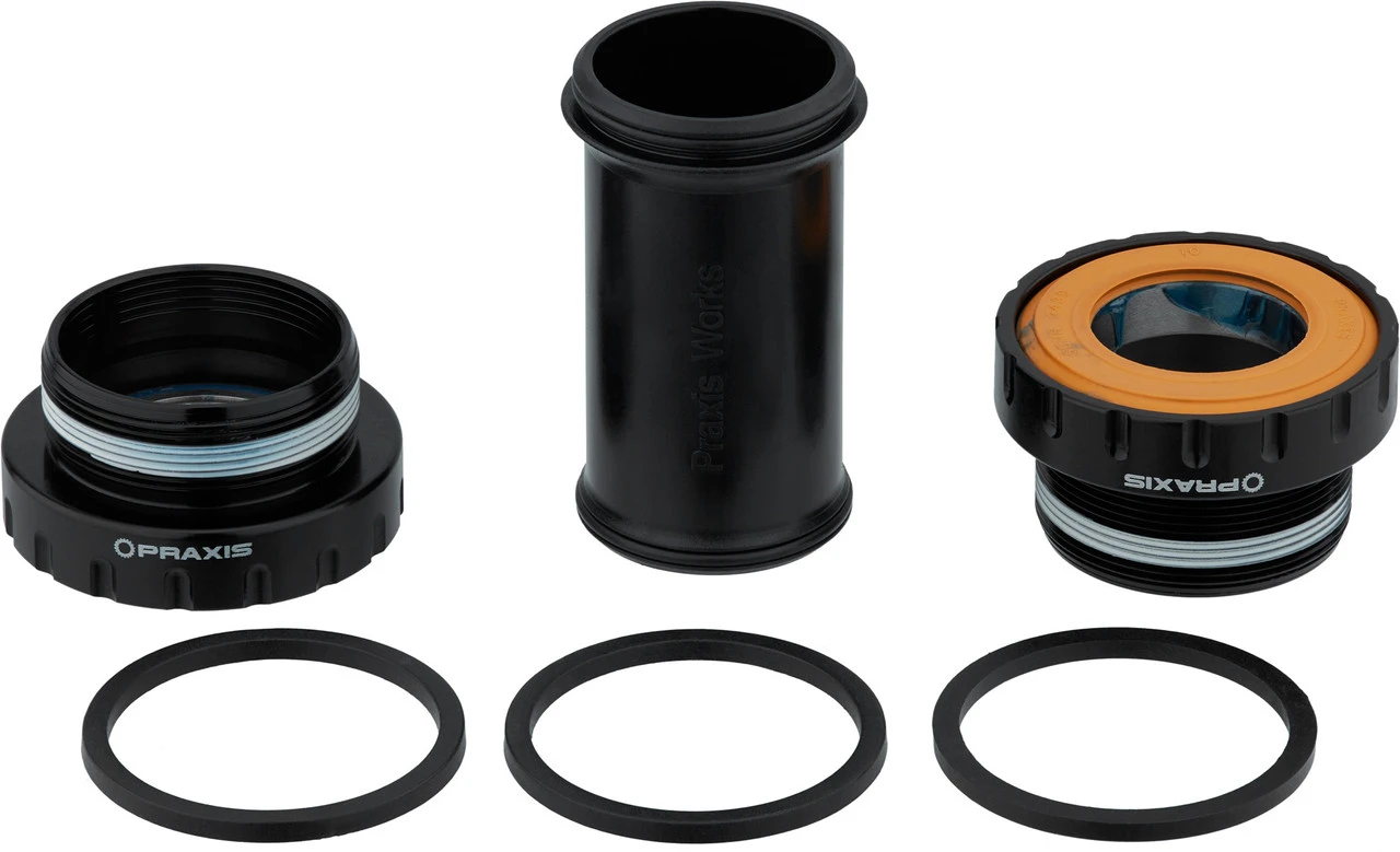 Lieferumfang:1 x Lagerschale Praxis Works BSA mit Lager, links1 x Lagerschale Praxis Works BSA mit Lager, rechts1 x Innenlagerhülse Praxis Works2 x Dichtung orange2 x Spacer
